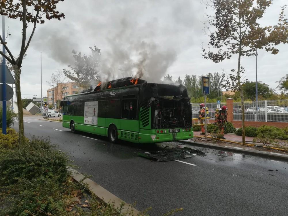 Sobre las 11:50 de la mañana, los bomberos municipales han dado por extinguido el incendio en el que han participado un cabo y cinco bomberos y se ha empleado una bomba urbana ligera y una toma de agua cercana a la Universidad que ha proporcionado a los bomberos un caudal de agua suficiente para extinguir las llamas. El autobús ha resultado muy dañado por la virulencia de las llamas y los principales desperfectos se han registrado en la parte trasera del vehículo y en el techo. Además varios asientos del interior del habitáculo han resultado calcinados al igual que las ventanas de todo el autobús que se han fracturado debido a las altas temperaturas que se han alcanzado debido a las llamas.