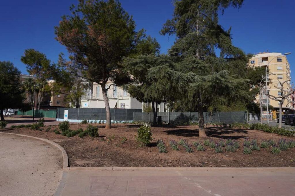 En cuanto a jardinería, se ha procedido al desbroce y poda de la vegetación de la plaza, la cual se ha reutilizado su triturado como compostaje natural que asegurará una mejor calidad en la tierra y textura. Además, se han retirado los setos y se han realizado plantaciones de especies aromáticas mediterráneas y resistentes.