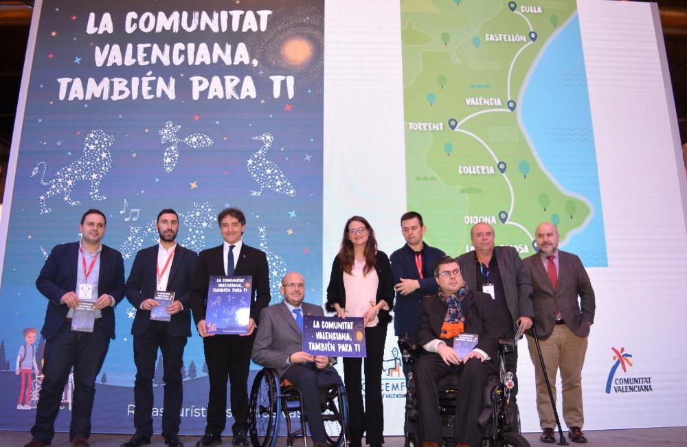La vicepresidenta del Consell y consellera de Igualdad y Políticas Inclusivas, Mónica Oltra, y el secretario autonómico de la Agència Valenciana del Turisme (AVT), Francesc Colomer, han presentado en la Feria Internacional de Turismo (FITUR) el segundo volumen de la guía de rutas turísticas inclusivas 'La Comunitat, també per a tu', elaborada por la Confederación Española de Personas con Discapacidad Física y Orgánica de la Comunitat Valenciana (COCEMFE CV), con la colaboración de la AVT.