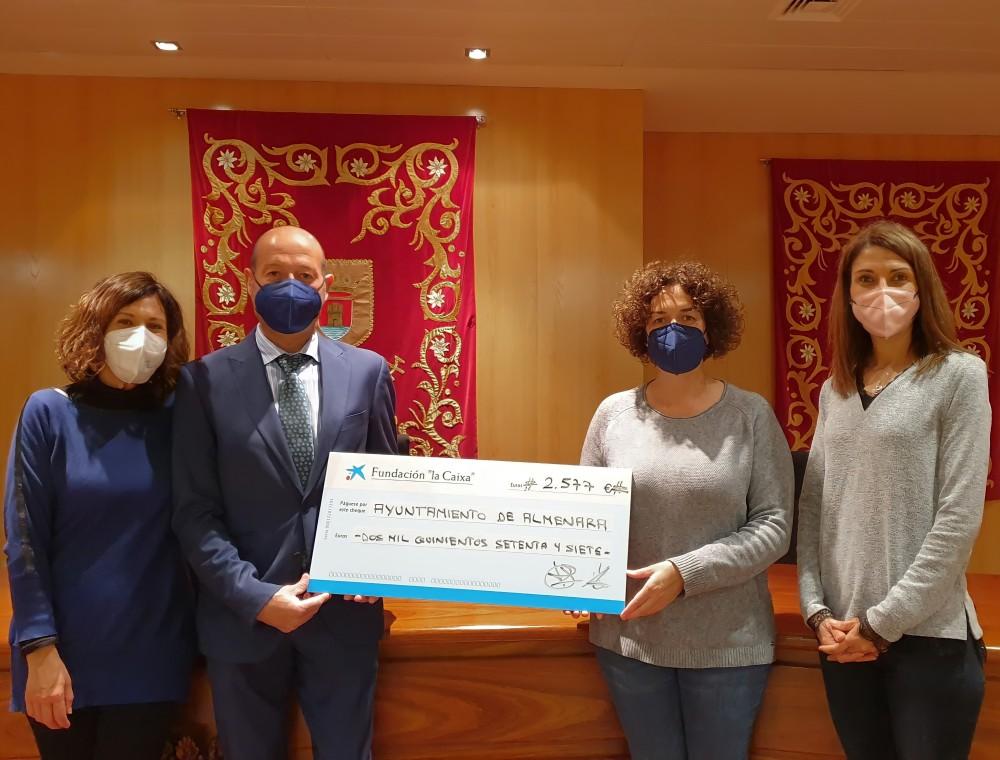 CaixaBank, a través de una aportación económica de la Fundación “la Caixa”, ha mostrado su apoyo a la puesta en marcha del Banco de productos de Higiene Personal y Doméstica del Ayuntamiento de Almenara que complementa al actual Banco de Alimentos de la localidad (financiado por FEAP y proporcionados por Cruz Roja), en el que se atienden a 302 usuarios repartidos en 124 familias.