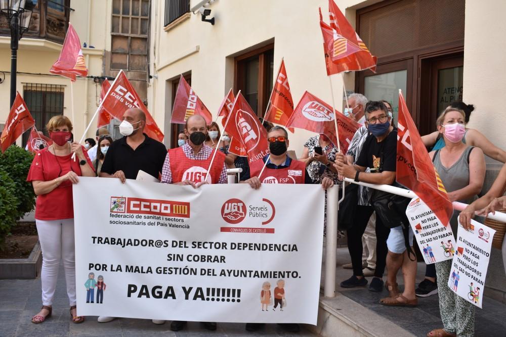 El Ayuntamiento de Castellón no ha aprobado, en el pleno de esta mañana, el reconocimiento extrajudicial de crédito para hacer frente a la deuda que mantiene con las trabajadoras del Servicio de Asistencia Domiciliaria (SAD). La manifestación, apoyada por la Unión General de Trabajadores del País Valenciano (UGT-PV) y Comisiones Obreras (CCOO), entre otros, se ha realizado bajo las dependencias en las que el equipo de gobierno de la capital de la Plana se encontraba reunido.
