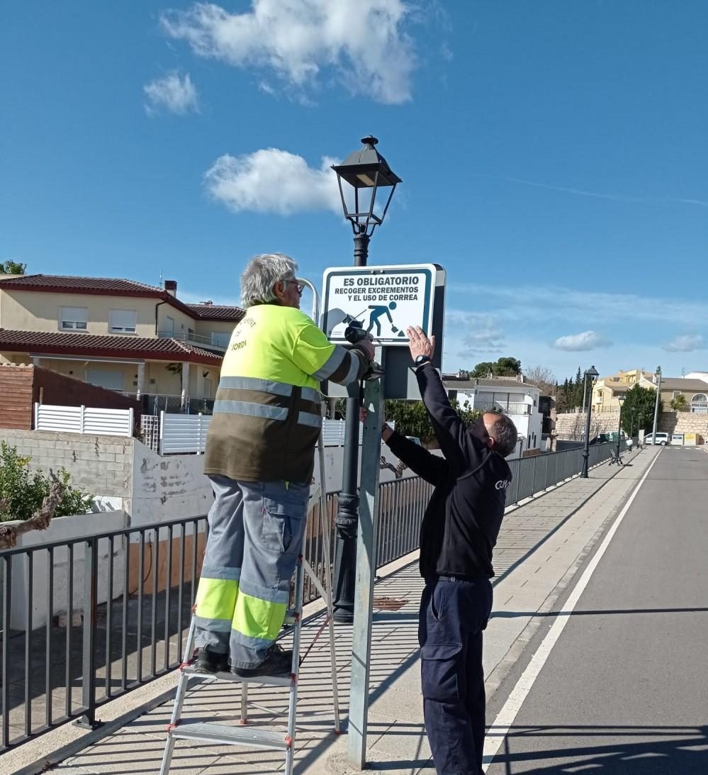 Estos trabajos han incluido también la actualización y ampliación de la señalización informativa en algunas calles y viales del pueblo para que los vecinos lleven siempre controladas con la correa a sus mascotas y recojan los excrementos de sus animales domésticos cuando los saquen a pasear por el pueblo.