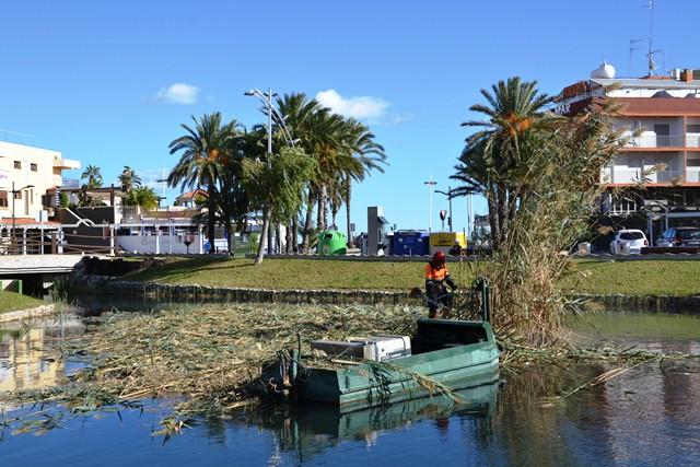 Mantener la flora de este entorno en equilibrio supone una inversión de recursos más que considerable para el consistorio que, no sólo debe realizar las tareas de limpieza y desbroce de forma semestral para evitar el crecimiento desmesurado de las isletas de cañas, sino que también debe mantener el entorno limpio de algas. Con este objetivo la concejalía de Servicios y Obras, realiza de forma prácticamente diaria las tareas de limpieza durante los meses de verano, en los que la temperatura del agua es más alta y se generan más algas que afloran a la superficie; durante estos meses, dos días a la semana, los camiones retiran las algas talladas que transporta la corriente hacia las redes de contención, para evitar su salida al mar.
