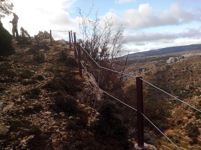 Los escaladores se han encargado de colocar las barandillas y los cables. El Ayuntamiento de Vilafranca se ha hecho cargo de los materiales. El pasado verano, durante la celebración de los 775 minutos de deporte se inauguró esta zona de escalada que está muy concurrida por parte de los escaladores de la localidad y también por parte de aficionados llegados desde otras localidades. Los aficionados a la escalada siguen con los trabajos para equipar este entorno. De hecho, en la parte inferior de zona ya marcada se están habilitando nuevas vías para la práctica del deporte.