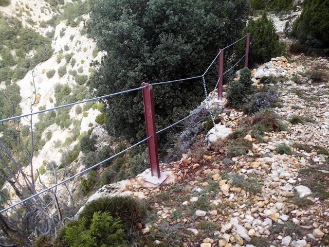 En la zona de escalada se han colocado barandillas, mientras que en la zona más estrecha de la ruta se han colocado cables metálicos agarrados a la roca.