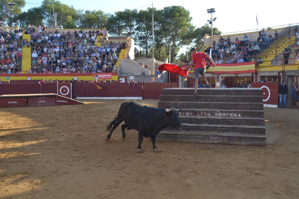 Los recortadores mostraron sus habilidades ante el numeroso público que se dio cita en el recinto taurino. Entre ellos estaba el alcalde de la localidad, Rafael Albert, junto a varios miembros de la corporación municipal.