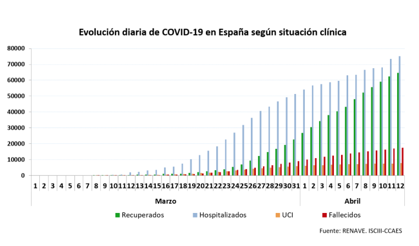 A nivel global hasta el día de hoy se han notificado al menos 1.614.951 casos y 99.887 fallecidos. Los países de fuera de Europa que han registrado más casos son Estados Unidos (492.416), China (83.482), Irán (70.029), Canadá (22.544), Brasil (20.727) y Corea del Sur (10.512).