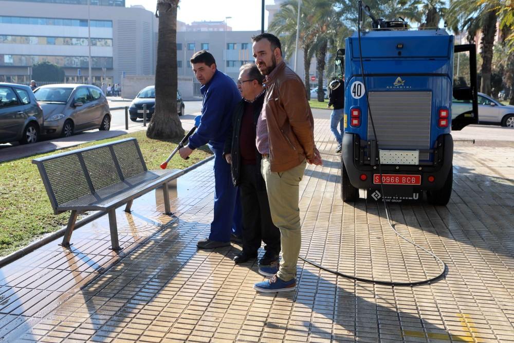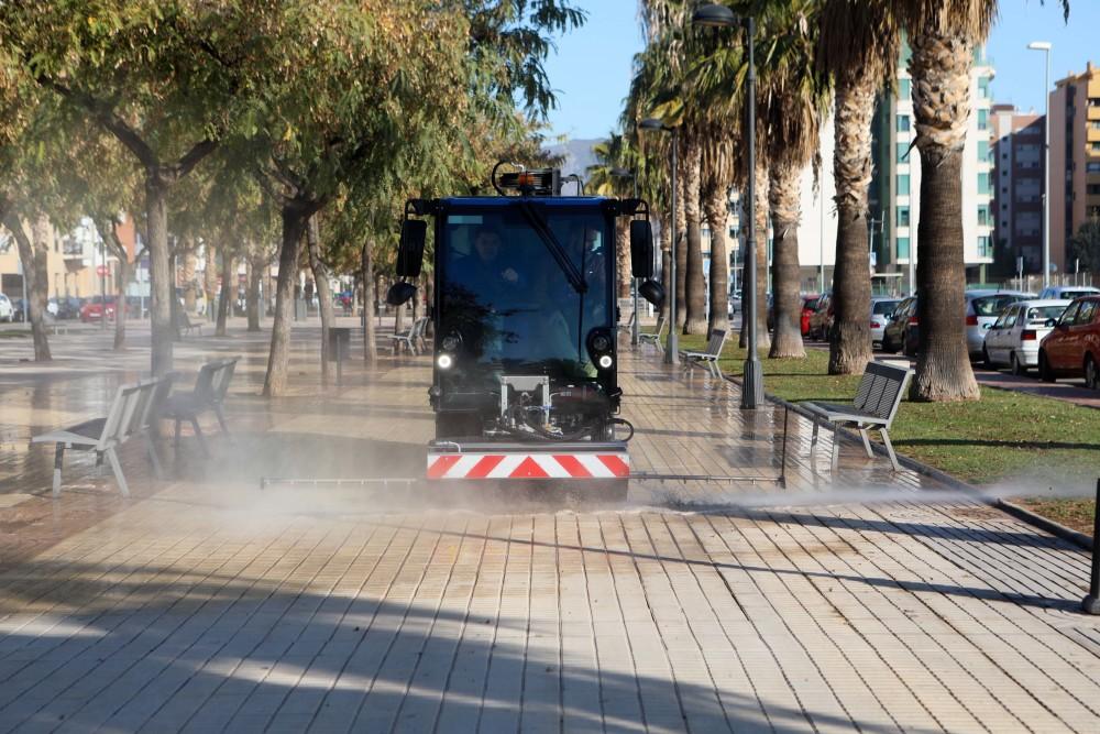 Castelló ha incorporat un nou vehicle de baldeig al servei municipal de neteja viària que incorpora una de les tecnologies més avançades del mercat. El regidor d'Ordenació del Territori i responsable de Serveis Públics, Rafa Simó, ha presentat una nova baldejadora que presenta com a principal avantatge "un mecanisme de baldeig regulable en amplària fins als 3,5 metres que facilita l'adaptació a voreres i vials d'una manera molt més eficaç".