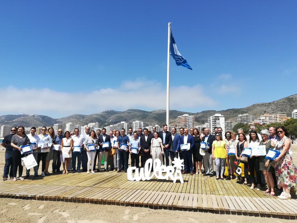 La encargada de recoger las banderas, en un multitudinario acto celebrado en el Hotel Sicania de Cullera, ha sido la alcaldesa, María Jiménez. Así mismo, en la cita también han estado presentes Fernando Torrent y Arturo Peña, vicepresidente y gerente del Puerto Deportivo, respectivamente.