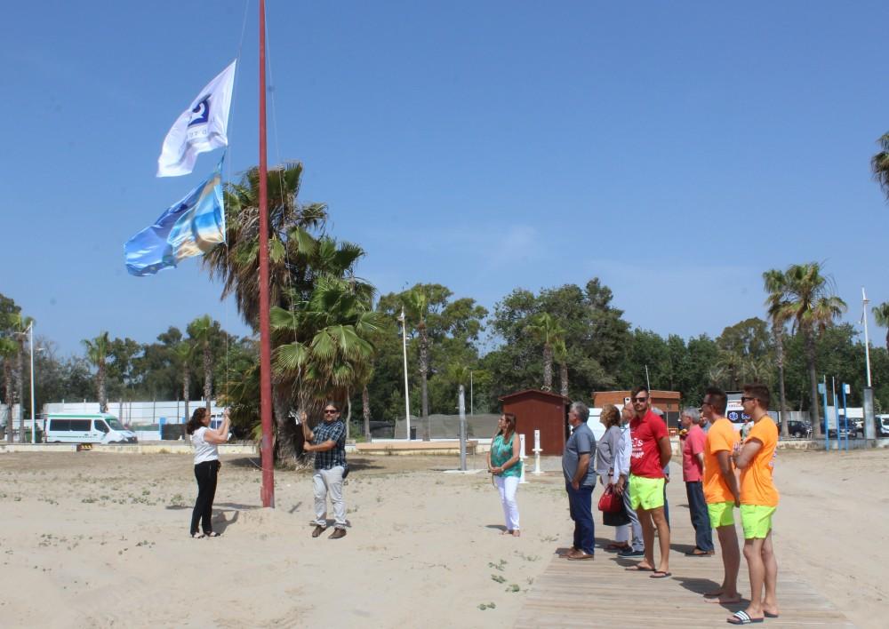 Així, al costat dels treballadors de via pública i el servei de salvament i socorrisme i una nodrida representació municipal , Sara Molina, regidora de Turisme i Bruno Arnandis, regidor de Medi Ambient han hissat primer la Bandera Blava, i uns minuts més tard la bandera Q de Qualitat.