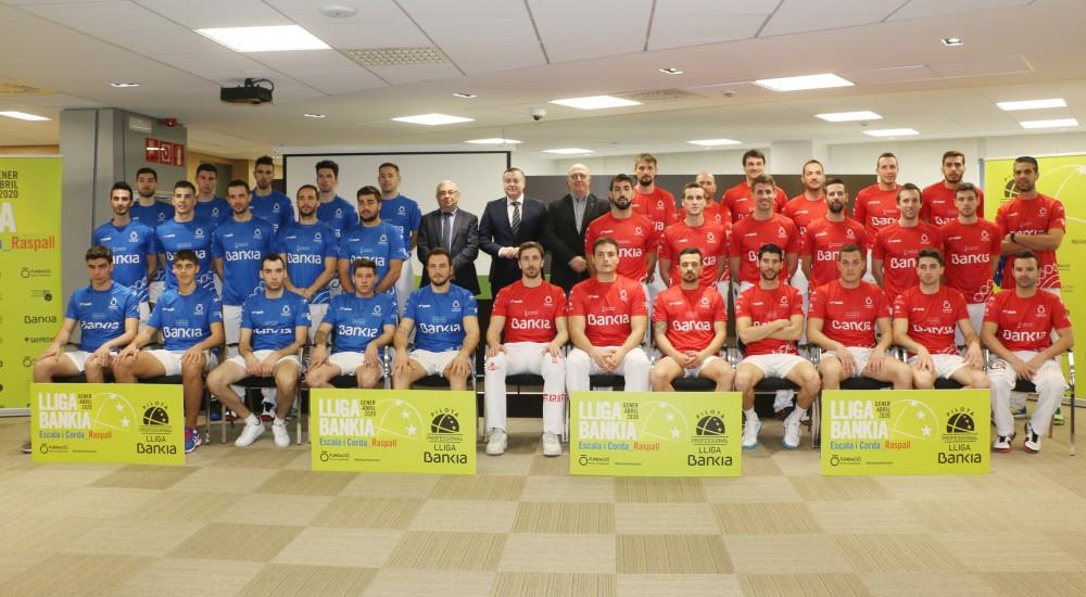 Bankia patrocina la 'Lliga Bankia de escala i corda', que afronta su edición número 29, y la 'Lliga Bankia de raspall – Trofeu Diputació de València', que cumple 27 años de vida, que han sido presentadas este miércoles en la sede de la entidad financiera en Valencia. En la presentación han participado el director corporativo de la Territorial de Bankia en Valencia y Castellón, Jaime Casas; el vicepresidente de la Fundació de Pilota, José María Cataluña; y el presidente de la Federació de Pilota Valenciana, José Daniel Sanjuan, así como los jugadores de las dos categorías.