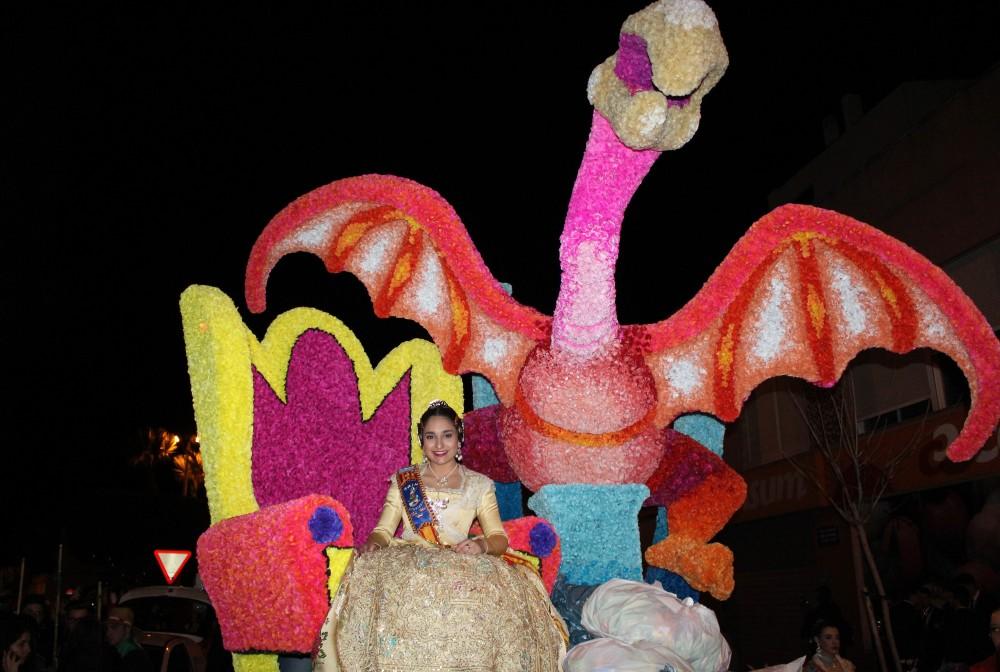 La carrossa de Judith Pesudo, Reina Fallera de Borriana 2018, acompanyada de la seua cort d'honor va ser la que va tancar la comitiva de la desfilada.