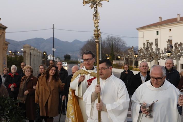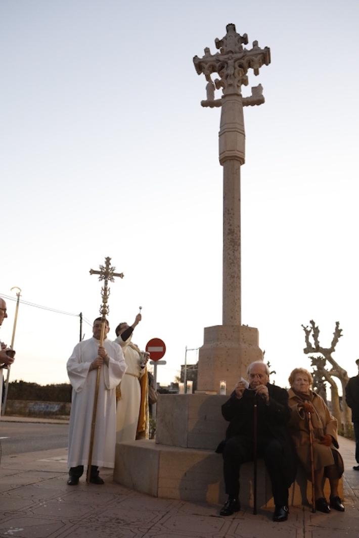 Ha asistido a la celebración el propio autor, que ahora cuenta con ochenta y dos años de edad. No en vano tan sólo tenía veintidós cuando esculpió esta obra tan significativa y visualizada de la Ciudad. También asistió su esposa, sus hijas y otros muchos familiares. Al finalizar la Misa se formó una procesión hasta la propia Cruz de Término, que aparecía iluminada con cirios. Allí el Prior rezó una Oración, procediendo a rociar con agua bendecida tanto la cruz como a los presentes, incensando después la imagen del Cristo y de la Virgen del Lledó.