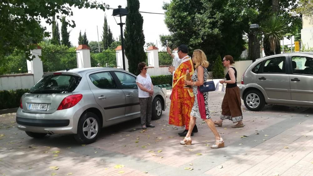 El prior de Lledó, Josep Miquel Francés, ha sido el encargado de bendecir los automóviles