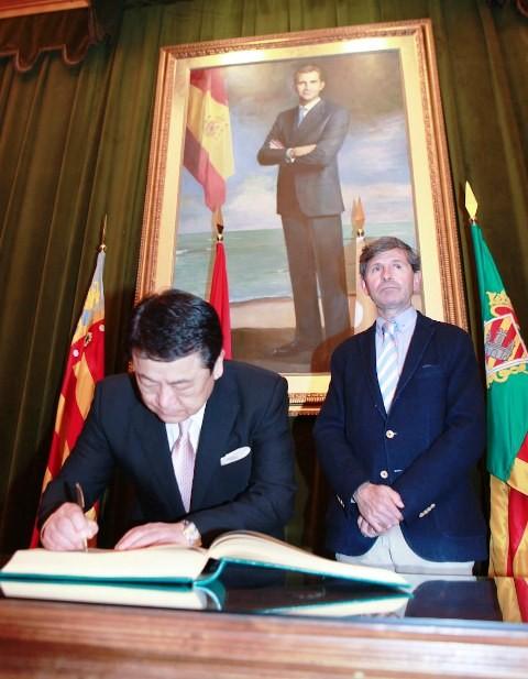 Después del recibimiento, Nobumasa Suetsugu ha firmado en el Libro de Honor del Ayuntamiento, tras lo cuál el Alcalde de Castellón ha tomado la palabra.