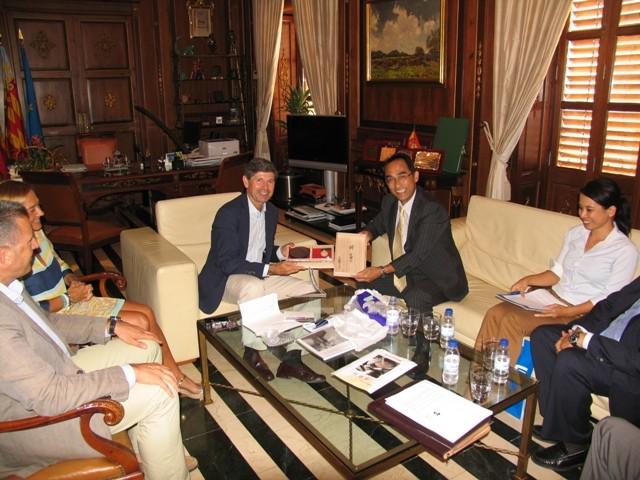 Los representantes de la empresa establecida en el Grao también hicieron entrega a Alfonso Bataller de un obsequio de parte de la alcaldesa de la ciudad japonesa de Ube, Kimiko Kubota.