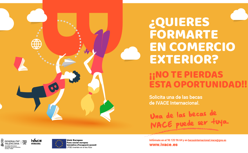 Ivace Internacional ha publicado las convocatorias de dos programas de becas de especialización en internacionalización dirigidas a personas menores de 30 años en situación de desempleo: las Becas Ivace Exterior y las Becas E+E, Exportación y Empleo, ambas financiadas en un 91,89% a través de la Iniciativa Juvenil del Fondo Social Europeo (FSE).