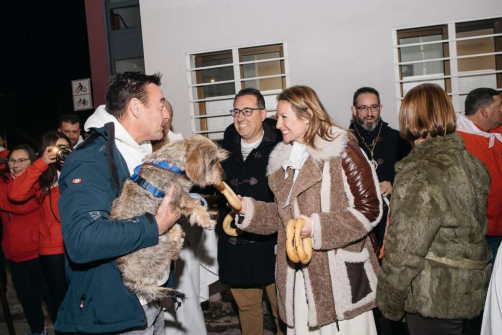 Begoña Carrasco, alcaldesa de Castellón, acompañada del concejal de Barrios, Paco Cabañero ha ejercido de Clavariesa de Honor en la celebración del acto central de las fiestas en honor a San Antonio Abad en el Grupo San Agustín y San Marcos.