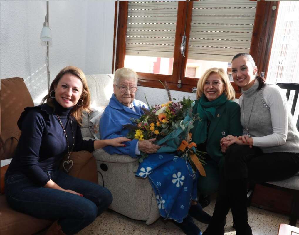 La alcaldesa de Castellón, Begoña Carrasco, acompañada de la concejala de Gente Mayor, Clara Adsuara y de la concejala de Cultura y Educación, María España, ha felicitado a Humildad Agut Escrig, vecina de Castellón, que el 8 de diciembre cumplió 105 años.