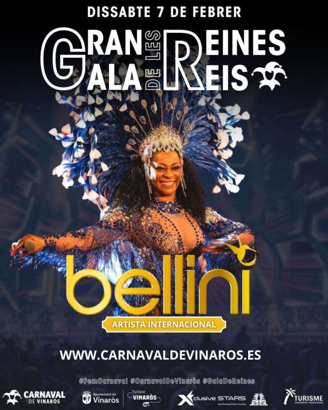 La Gala de las Reinas del Carnaval de Vinaròs 2026, que se celebrará la tarde del sábado 7 de febrero, contará con la actuación estelar de la formación alemana Bellini. La música brasileña de Bellini, con Dandara Santos-Silva al frente, hará vibrar el recinto que acogerá el evento más esperado del carnaval vinarocense, la presentación de las fantasías más espectaculares de la fiesta y que portarán las reinas y reyes de las comparsas.