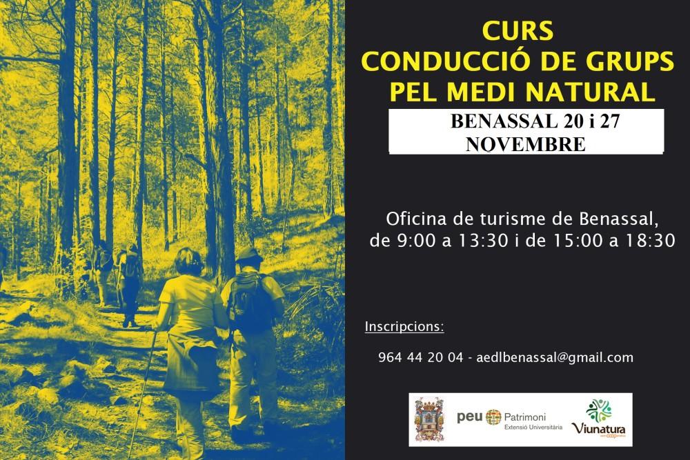 El Ayuntamiento de Benassal ha programado el 20 y el 27 de noviembre como nuevas fechas para el curso de Conducción de Grupos por el Medio Natural. La actividad se realizará en la oficina de turismo del municipio en horario de mañana de 9.00 horas a 13.30 horas y en horario de tarde de 15.00 horas a 18.30 horas.