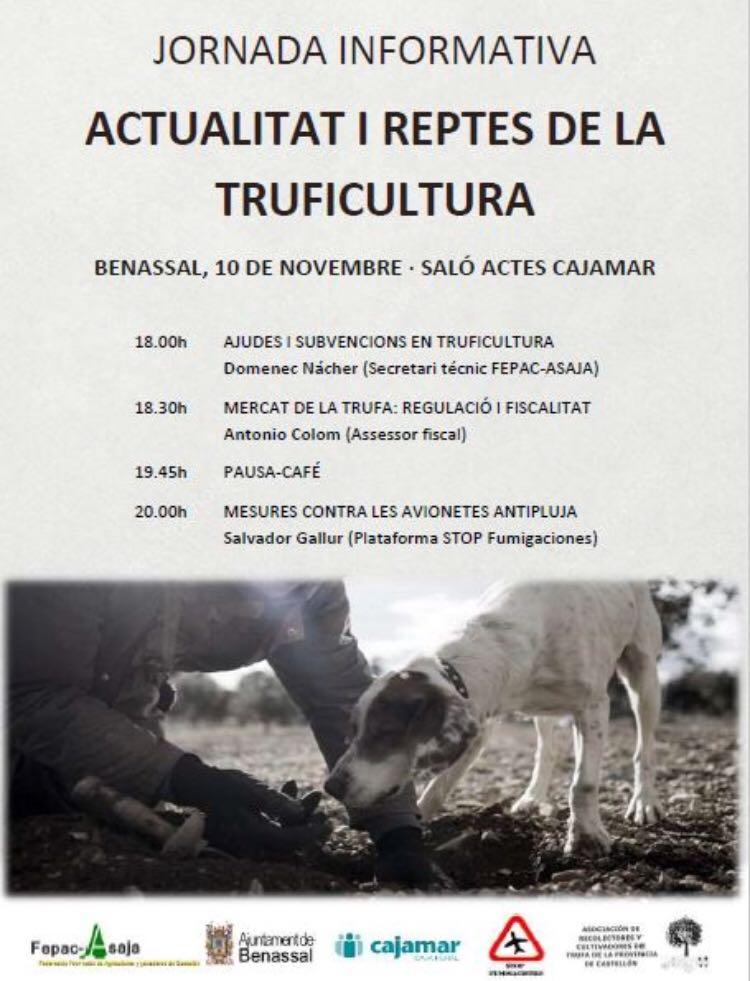 La jornada cuenta con el apoyo de Fepac Asaja, el Ayuntamiento de Benassal, Cajamar, la plataforma Stop Fumigaciones y la asociación de truficultores de Castellón.
