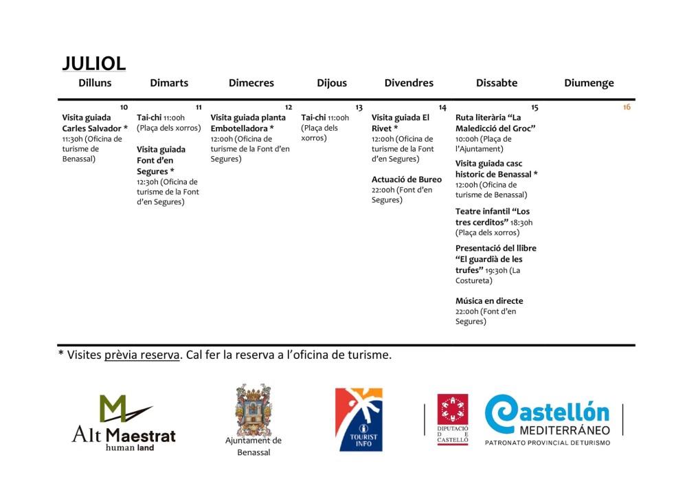 La programación se puede consultar en la web municipal , en la página de facebook municipal y en la página de facebook de la Tourist Info Benassal.