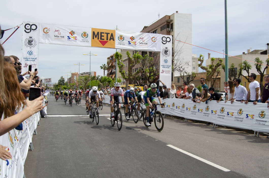 El corredor mallorquín del Equipo Cortizo, Fran Benassar vuelve a levantar los brazos en la meta de la segunda etapa del Gran Premi Vila-real que acabó, com el año pasado, en un disputado sprint frente a la Ciutat Esportiva Municipal Pau Francisco Torres de Vila-real.