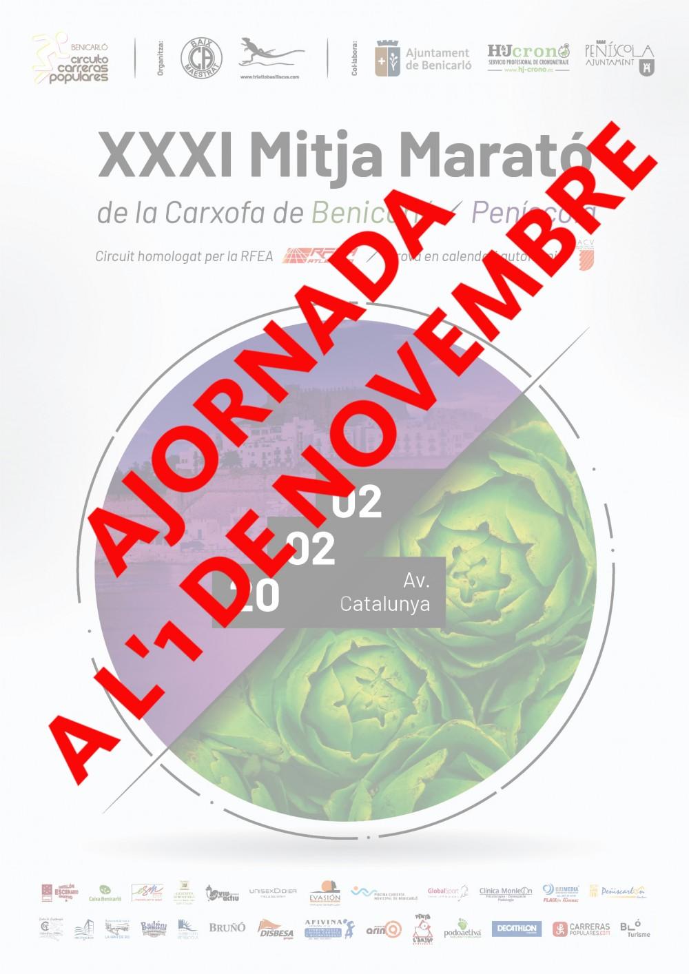 La Mitja Marató de la Carxofa, una de les curses més emblemàtiques del calendari esportiu benicarlando, s'ha hagut d'ajornar per segona vegada en menys de dos mesos. El primer ajornament es va produir al mes de gener, a causa dels efectes de la borrasca Glòria i ara, degut a les conseqüències del coronavirus, la cursa s'ha decidit traslladar a l'1 de novembre. «Davant de les mesures extraordinàries que s'estan adoptant, no podiem fer una altra cosa que ajornar la Mitja Marató de la Carxofa», ha dit el regidor d'Esports, Fernando Jovaní.