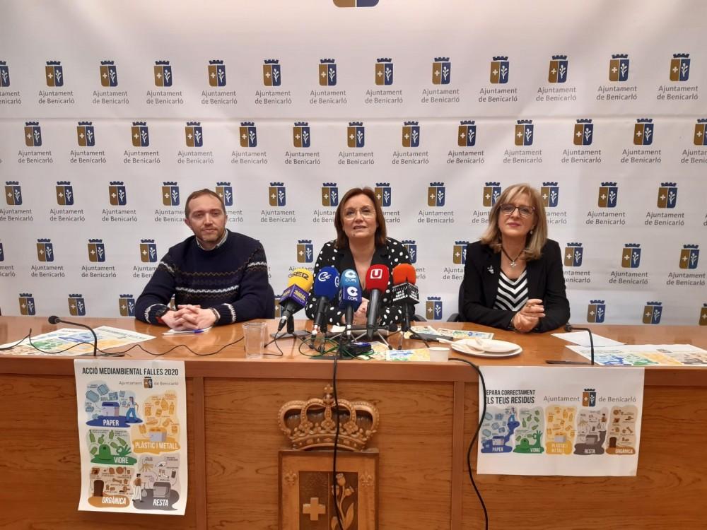 L'alcaldessa de Benicarló, Xaro Miralles, acompanyada per la regidora de Medi Ambient, Filo Agut, i el regidor de Festes i Falles, Pedro Manchón, ha presentat la campanya d'acció mediambiental que s'ha preparat per a Falles, amb l'objectiu d'aconseguir unes festes més respectuoses amb el medi ambient augmentant el reciclatge, reduint el volum de residus generats i eliminant els plàstics d'un sol ús. L'alcaldessa ha desvetllat que «la campanya s'inicia ara amb les Falles, però li donarem continuïtat a la resta de festes i activitats que organitzen les associacions i que siguen susceptibles de generar residus».