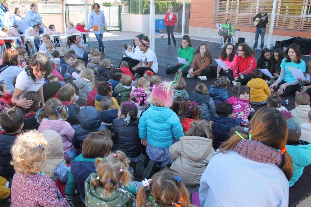 Los alumnos y alumnas de las escuelas infantiles municipales de Benicàssim han tenido hoy la oportunidad de compartir una actividad junto a estudiantes de 1º de Bachillerato del IES Violant de Casalduch que cursan la asignatura optativa de Música. Cinco han sido las canciones infantiles que las jóvenes estudiantes han cantado y bailado junto a los menores que han disfrutado al máximo de la actividad. “Para el alumnado del IES es una experiencia muy bonita porque por unos minutos vuelven a su infancia y la relación intergeneracional que se genera es muy enriquecedora para todos”, indican desde el departamento de Música que cuenta con los profesores Elena, Jordi y Edu.