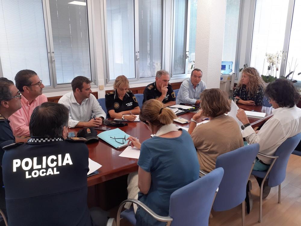 El Ayuntamiento de Benicàssim está trabajando ya en la elaboración de los presupuestos municipales del próximo ejercicio 2020 y uno de los temas que el equipo de gobierno, que preside Susana Marqués, va a estudiar para su inclusión es el aumento de partida para sumar nuevos agentes a la plantilla de la Policía Local. Este fue uno de los temas tratados en la reunión celebrada en el consistorio y a la que asistieron la primera teniente de alcalde, Cristina Fernández, el concejal de Seguridad Ciudadana, Domingo Lorenzo, el concejal de Recursos Humanos, Javier Alonso, y el responsable de Hacienda, Arturo Martí, junto a miembros del cuerpo policial encabezado por el intendente jefe Eugenio Capitán.