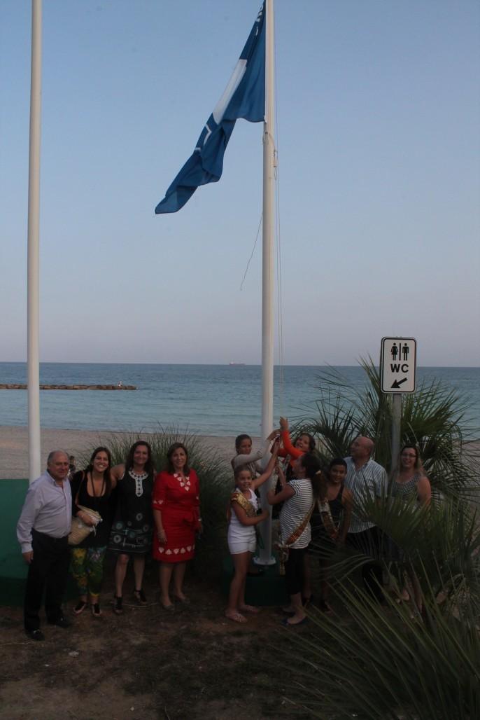 El acto ha tenido lugar en la playa dels Terrers, playa que de nuevo recupera este galardón junto a la de Heliópolis, Voramar, L'Almadrava y Torre Sant Vicent que además ya ostentan otros galardones como la ISO 14001 de gestión medioambiental y la Q de calidad turística.