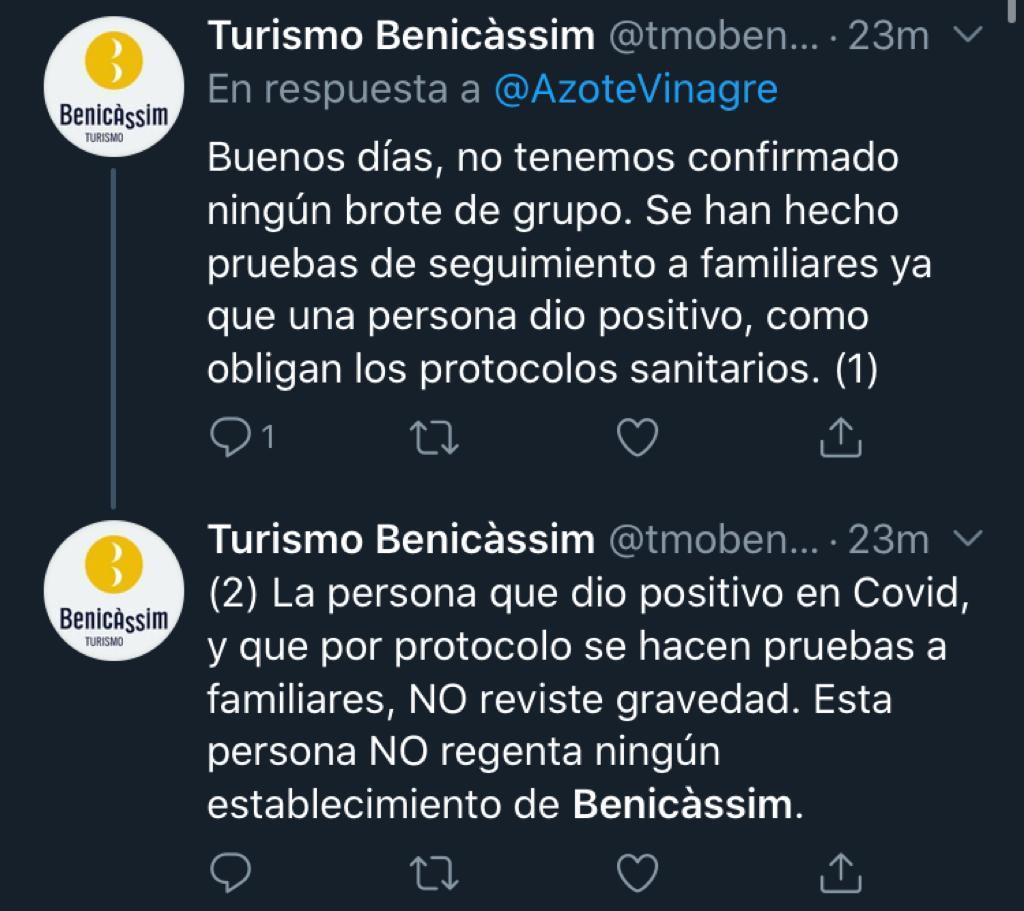 El Ayuntamiento ha querido desmentir "rotundamente" que sea el propietario de este local la persona supuestamente afectada por la enfermedad, pero por la llegada del familiar, y como medida de prevención sanitaria, se ha decidido la clausura de ambos establecimientos hasta que se esclarezca la situación. Según confirma el propietario "el médico me ha dicho que es por seguridad, y cuando se conozcan los resultados haré una foto a la prueba para que se conozca el resultado" después de los rumores y fake news que han trascendido por las redes sociales y en el boca a boca del municipio de la Plana Alta.