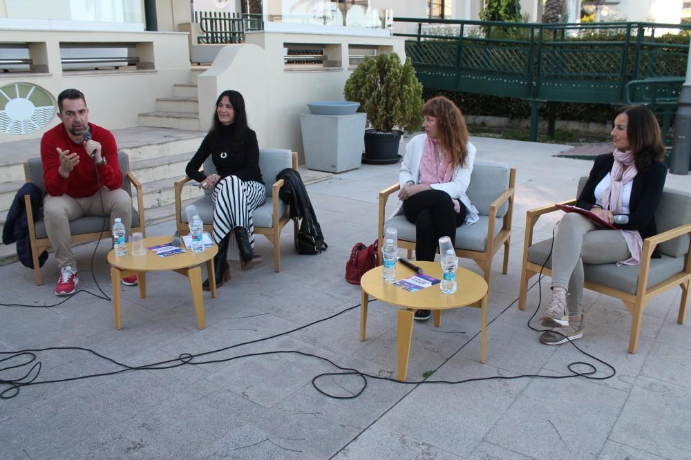 La programación desarrollada en el Espai Cultural de la Mar Villa Ana ha comenzado con dos microescenas de teatro del libro “Relacionados” a cargo de alumnos del IES Violant de Casalduch. Tras ello ha tenido lugar la mesa redonda que, moderada por Patricia Artero, ha contado con la participación de los escritores Maribel Escrig, María Pareja y Pere Cervantes.