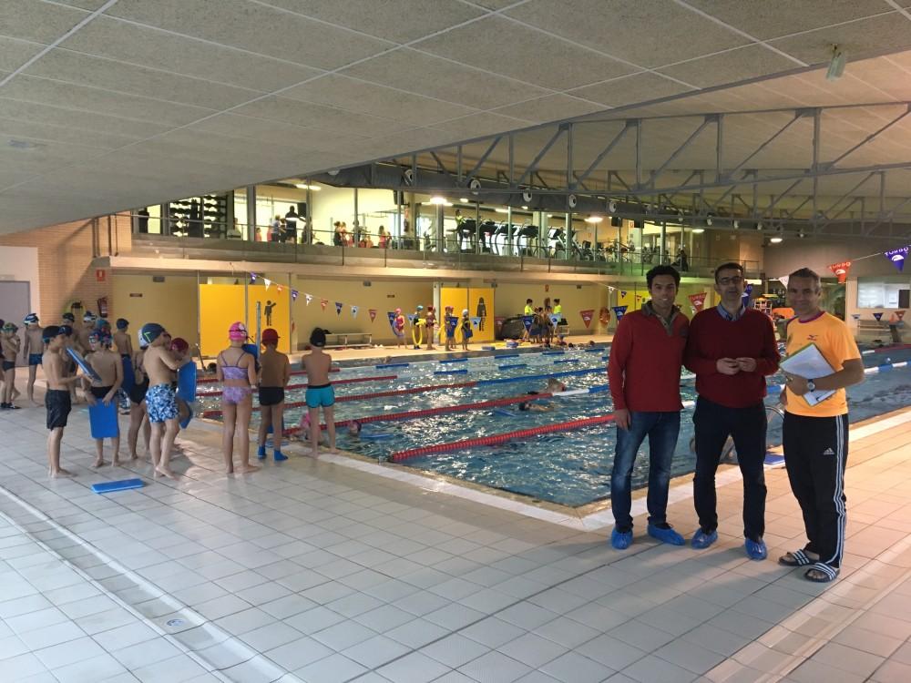 El concejal de deporte, Javier Alonso, ha visitado las actividades acuáticas del programa de fomento del deporte en el entorno escolar. Gracias a este programa un total de 49 alumnos/as del CEIP Palmerar y 64 del CEIP Santa Águeda pueden recibir una de sus clases semanales de educación física como clase de natación en la piscina municipal. El programa se hace posible gracias a la colaboración de la Piscina Municipal que durante las mañanas de los miércoles y los viernes, destina algunas calles de la piscina a ofrecer estas clases que diversifican la formación física de los más pequeños introduciéndoles en los deportes acuáticos.