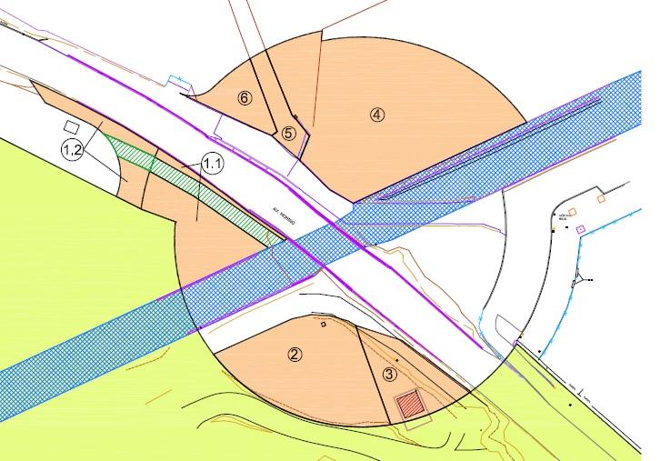 Esta glorieta, tendrá una gran envergadura y ha sido necesario obtener terrenos adyacentes para poder proyectar un diseño que cuente con grandes medidas de seguridad vial y que permita al mismo tiempo salvaguardar los accesos a las viviendas del entorno y el paso de una vereda pecuaria.