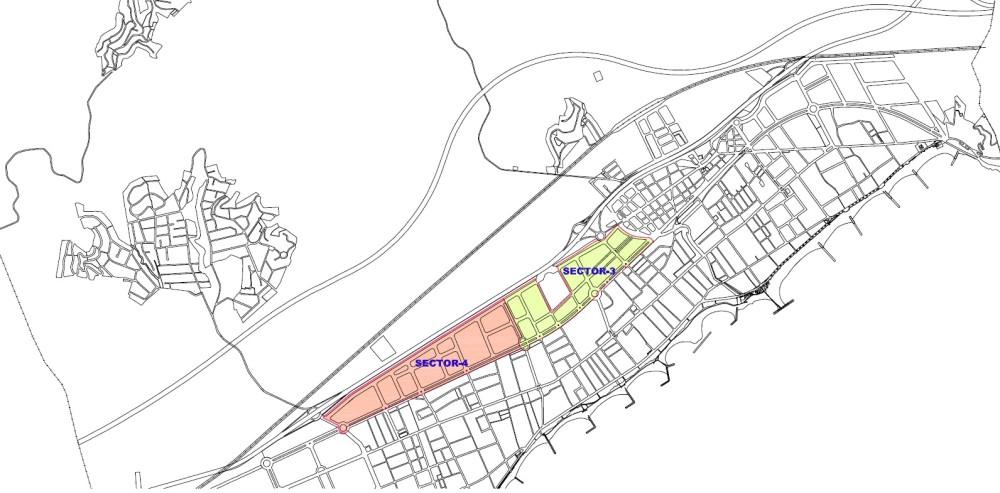 El sector 3 cuenta con una superficie de 327.477m2 y es el más cercano al casco urbano, recayente en paralelo a la N-340 frente a la zona del recinto de festivales. Este se subdividirá en tres unidades de ejecución. Mientras, el Sector 4, de 437.472m2 se sitúa junto al anterior en dirección sur, formando entre ambos una franja de desarrollo que supone la fachada del municipio a la Nacional 340. En este caso, la división se realizará en cuatro fragmentos urbanísticos que se pondrán a disposición de los agentes de desarrollo.
