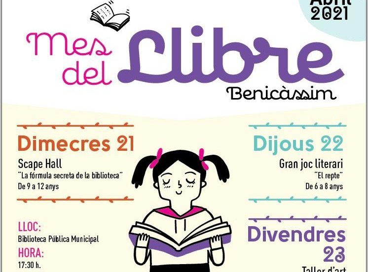 El públic infantil i juvenil serà el protagonista de les activitats organitzades per la Regidoria de Cultura de l'Ajuntament de Benicàssim amb motiu del Dia del Llibre. Com ha explicat l'edil de l'àrea, Javier Alonso, “s'ha preparat una sèrie d'activitats per a potenciar la literatura entre els menors amb totes les mesures de seguretat sanitària requerides”. Així, la Biblioteca Municipal és l'espai que acollirà a partir del dimecres els actes programats amb motiu del Dia del Llibre. Totes les activitats començaran a les 17.30 hores, tenen aforament limitat i els interessats a participar han de realitzar inscripció prèvia de manera presencial o a través del correu electrònic biblioteca@benicassim.org.