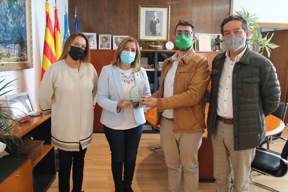 Ecovidrio, la entidad sin ánimo de lucro encargada de la gestión del reciclado de los residuos de envases de vidrio en España, ha hecho hoy entrega al Ayuntamiento de Benicàssim del galardón Iglú Verde por superar el reto de recogida selectiva de envases de vidrio establecido durante la campaña Banderas Verdes, que tuvo lugar durante los meses de julio y agosto. La alcaldesa, Susana Marqués, ha recibido el Iglú Verde de manos del técnico de zona de Ecovidrio, Manuel Sala.