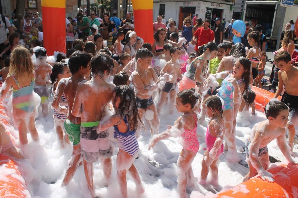 A partir de las 11.00 horas, la fiesta y la diversión se han trasladado al entorno de la iglesia Santo Tomás de Villanueva donde se ha desarrollado la Gran fiesta del agua. El tobogán acuático de 75 metros, los hichables acuáticos, juegos y la fiesta de la espuma han hecho las delicias de todos los asistentes entre los que no han faltado la reina infantil y las damas de las fiestas. El concejal de Fiestas, Arturo Martí, ha comentado que “la fiesta del agua tuvo una gran aceptación el año pasado y por ello hemos querido repetir este divertido momento durante el primer día de completa actividad festiva”.