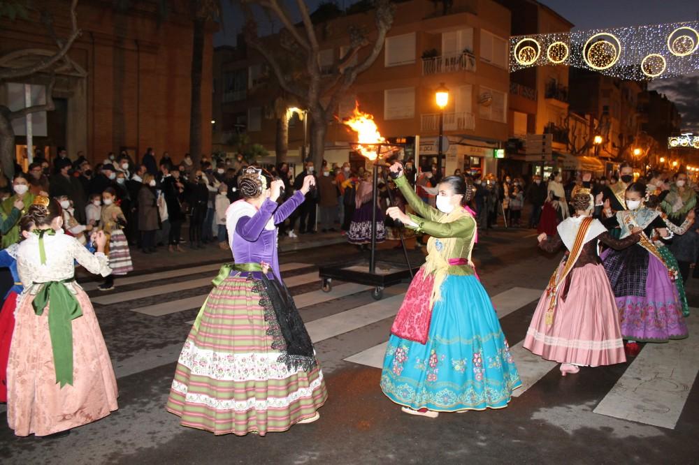 La tradició continuarà el diumenge 16 amb el volteig de campanes que anunciarà el ritual de l'encesa de les fogueres i que donarà pas al tradicional acte de benedicció i repartiment de la Coqueta. La concentració de participants en la tradicional desfilada de la Coqueta es realitzarà enguany en la plaça de les Corts Valencianes a les 21.30 hores i a les 22.00 hores es procedirà al solemne acte de benedicció del dolç típic. A tots els participants, que hauran d'anar abillats i ser portadors d'un animal com a marca la tradició, se'ls exigirà el compliment de les mesures de seguretat com ara distanciament social i l'ús de màscara. La desfilada finalitzarà al carrer Sant Tomàs on es procedirà al repartiment de les coquetes per part de les reines i dames de les festes. Com ha volgut recordar el regidor de Festes, Arturo Martí, "atenent les recomanacions sanitàries, el repartiment de coquetes solo es realitzarà entre els participants de la desfilada per a evitar amb això aglomeracions i concentracions del públic assistent en finalitzar l'acte".