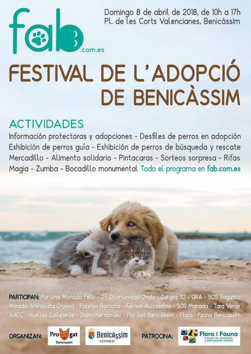 El festival está organizado por la concejalía de salud pública, la asociación  Progat y con el patrocinio de Flora y Fauna. Además, quince entidades más de toda la provincia que acogen animales para su posterior adopción, traerán sus canes en acogimiento para que las familias de Benicàssim y toda la provincia puedan adoptar un nuevo miembro en sus familias, según ha explicado la concejala de Salud Pública, Vanessa Batalla.