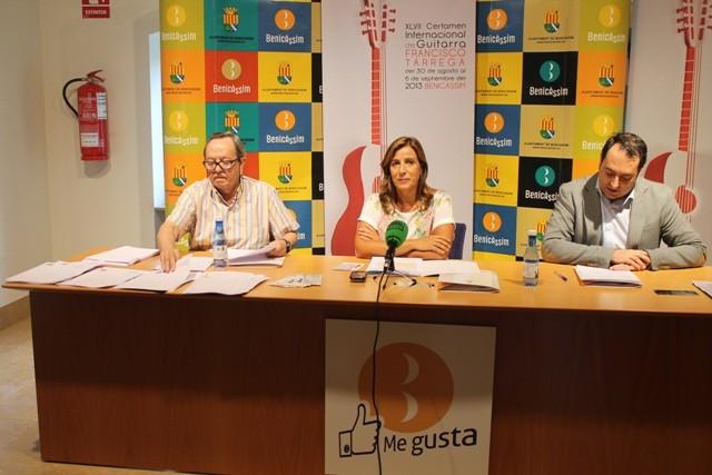 La alcaldesa, Susana Marqués, justo con el Concejal de Cultura, Mauro Soliva, y el director del certamen, Domingo Tárrega, han presentado la cuadragésima séptima edición del Certamen Internacional de Guitarra Francisco Tárrega que se celebrará entre los días 29 de agosto 6 de septiembre.