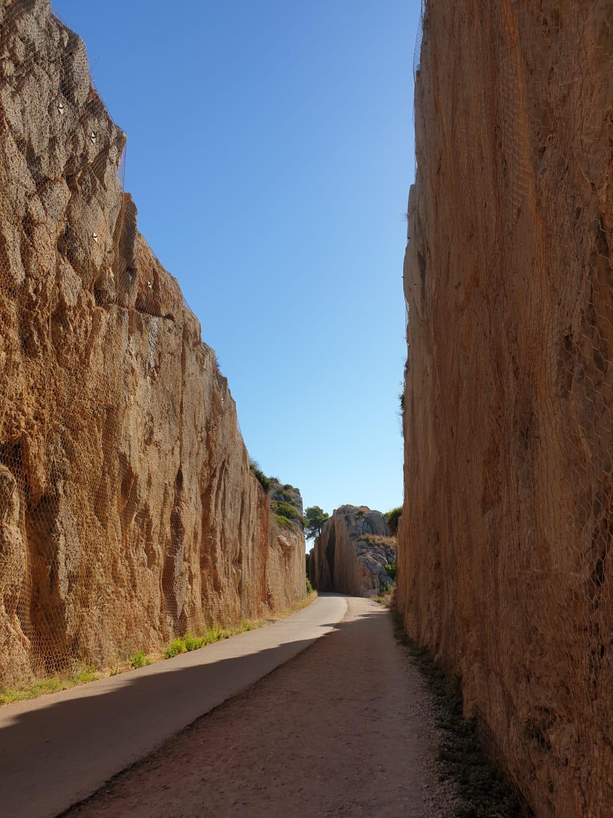 Volvemos a girar a la izquierda y en punto determinado abandonamos los naranjos para seguir, a la altura de un poste y una cadena, por un camino que va subiendo y estrechándose hasta convertirse en senda, en una zona en la que abundan las pequeñas cuevas y que se denomina 'Els Covarxos'.