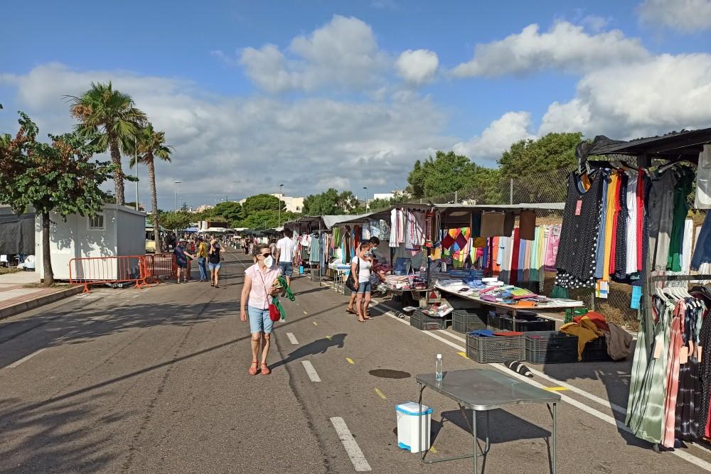 El mercado del jueves de Benicàssim, en su nueva ubicación, ha recuperado hoy el total de paradas que lo conforman. Los puestos de ropa, calzado y complementos se han sumado a los de alimentación que desde el pasado 21 de mayo, en la Fase 1 de la desescalada, retomaron su actividad.