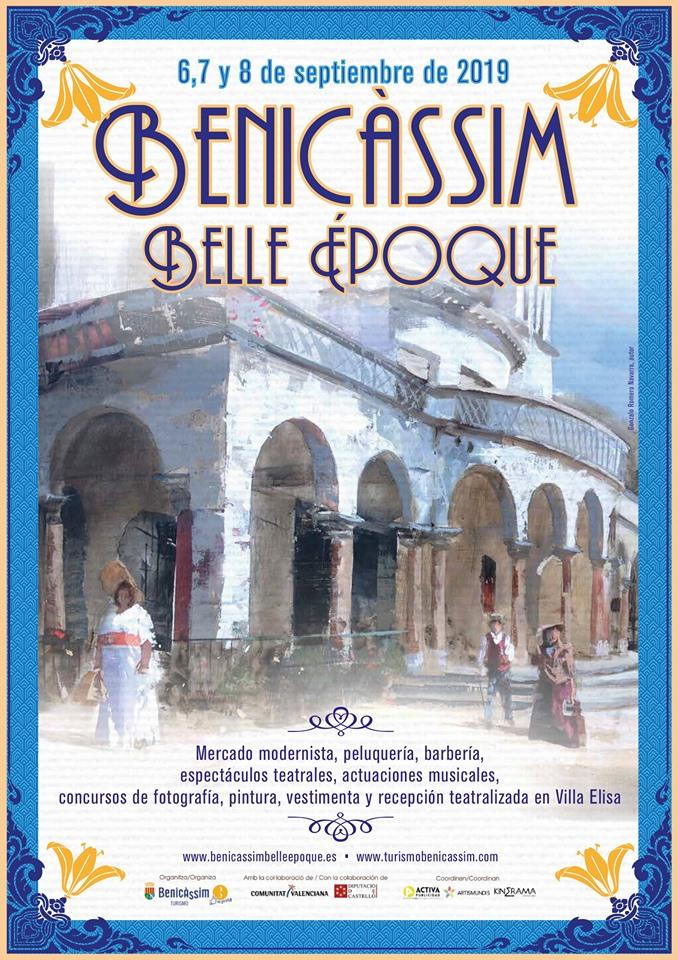 La concejalía de Turismo del Ayuntamiento de Benicàssim ya está acabando de perfilar la programación de la octava edición de Benicàssim Belle Époque. La recreación histórica tendrá lugar del 6 al 8 de septiembre en el paseo Pilar Coloma y, además de las diferentes actividades y actuaciones musicales y teatrales, los asistentes podrán ser partícipes del evento a través de los cuatro concursos que se han convocado para la presente edición. cartel Belle Epoque (1)