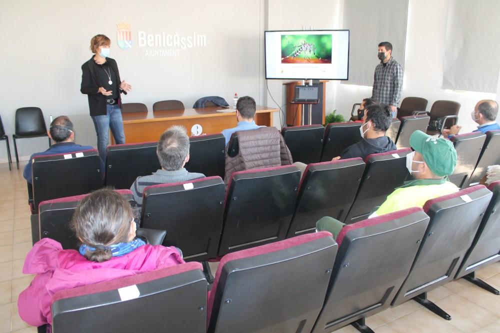 La sala de conferències de la Casa de Cultura de Benicàssim ha acollit aquest matí una reunió pràctica dirigida al personal de jardineria per a formar contra el mosquit tigre. El departament de Sanitat del consistori, juntament amb l'empresa concessionària del control de plagues del municipi, CTL Sanidad Ambiental, han convocat la trobada que ha comptat amb a l'assistència de personal de jardineria, controladors mediambientals, els qui han rebut una formació pràctica sobre la manera de controlar el mosquit tigre i han conegut les accions dutes a terme per l'ajuntament. “Són molts els espais on es pot estancar l'aigua i convertir-se en focus de mosquits; per això, exerciu un paper important en la prevenció del mosquit tigre i si en les propietats privades s'actua de manera correcta el control serà molt més eficaç”, ha indicat la regidora de Sanitat, Vanessa Batalla.