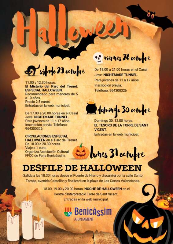 Benicàssim ha preparado actividades dirigidas al público infantil y juvenil con motivo de la celebración de Halloween y la programación se desarrollará del 28 al 31 de octubre.