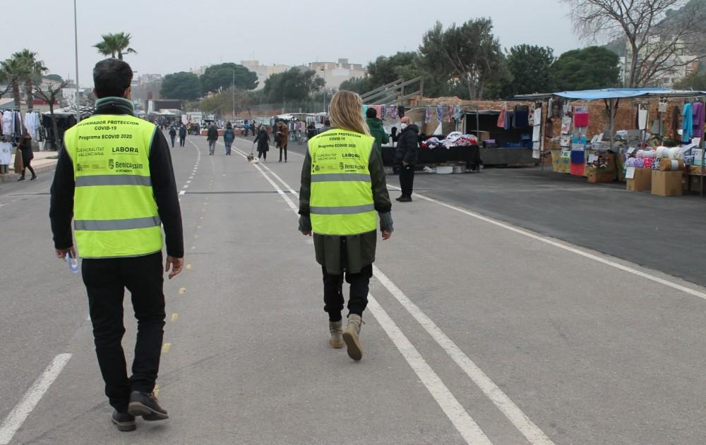 Debido a que la incidencia de casos positivos por Covid-19 en Benicàssim tiende a la baja, el municipio ha recuperado la actividad comercial y hoy se ha reanudado el mercado semanal. El espacio, ubicado en la calle Juan Carlos I y calle Colombia, se ha reordenado, se ha reducido el aforo y los auxiliares de seguridad situados en los diferentes accesos del nuevo recinto continúan, como hasta ahora, controlan la entrada y salida de todos los clientes. Además del control en la entrada y salida del recinto, los informadores ciudadanos, contratados a través del programa ECOVID de la Generalitat Valenciana, se han trasladado al mercado semanal para realizar acciones de información y concienciación a la ciudadanía en cuanto al cumplimiento de las medidas establecidas para evitar la propagación del Covid-19. “Gel hidroalcohólico en la entrada y salida del recinto así como cartelería recordando la distancia interpersonal tanto entre clientes como con los vendedores son otros de los elementos que se han instalado”, ha añadido la concejala responsable del área, Vanessa Batalla.